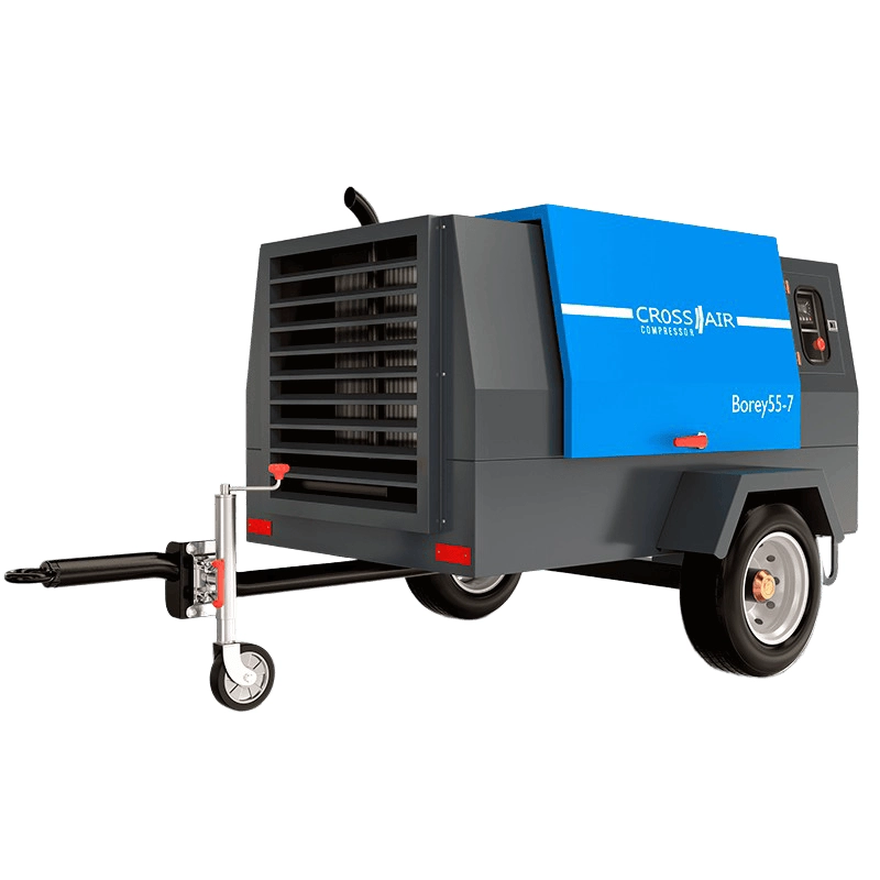 Дизельный компрессор на шасси оснащается усиленной рамой с пневматическими или резиновыми колесами. Компрессор не требует внешнего электропитания, что обеспечивает полную автономность. Современные модели оснащаются системами очистки выхлопных газов и шумопоглощающими кожухами. Передвижные дизельные компрессоры CrossAir комплектуются топливными баками увеличенной емкости для продолжительной работы.