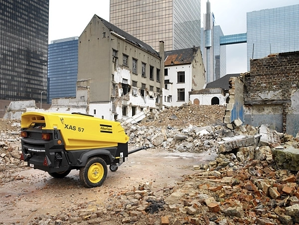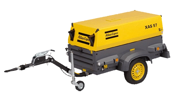 Компрессор XAS 57 имеет одноступенчатый винтовой маслозаполненный компрессорный элемент производства Atlas Copco Airtec приводимый в движение через ременный привод от дизельного двигателя марки Deutz. Установка смонтирована на прочном основании и закрыта прочным всепогодным и шумопоглощающим кожухом. Кожух открывается высоко вверх для доступа к обслуживаемым агрегатам и узлам установки. Кожух и основание оцинковано и окрашено порошковым способом с высушиванием при температуре +200°С. Сжатый воздух поступает к потребителю через два 3/4" выходных патрубка. Компрессорная установка XAS 57 оборудована топливным баком емкостью 40 литров.