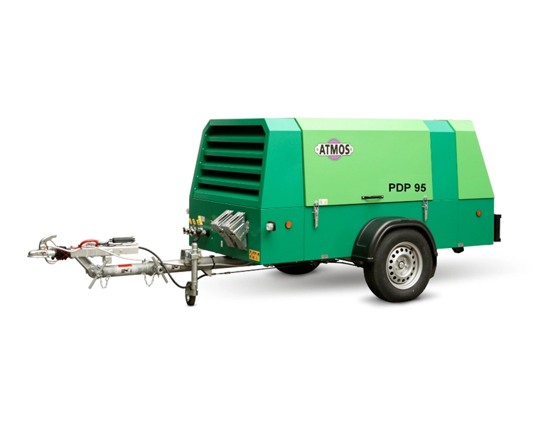 Передвижной компрессор Atmos PDP 95 на шасси с инерционным тормозом с изменяемой высотой буксира, со сцепным кольцом