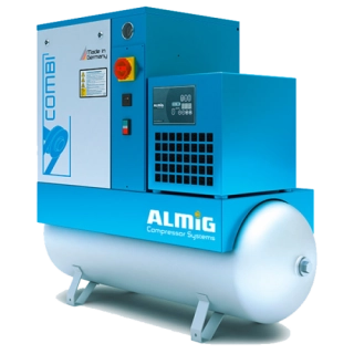 Винтовые компрессоры Almig Combi имеют мощность от 5,5 до 22 кВт и обеспечивают производительность в диапазоне от 0,62 до 3,34 м³/мин. Они оснащены надежным и эффективным клиноременным приводом.