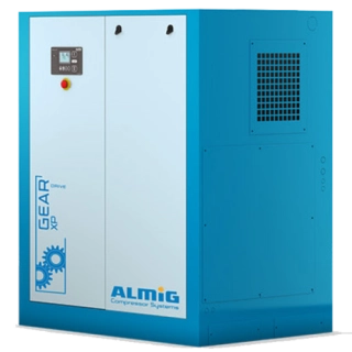 Винтовой компрессор ALMiG GEAR укомплектован трехфазным асинхронным электродвигателем и распределительным электрощитом с защитой IP 54. Охлаждение компрессорного блока осуществляется масляным впрыском с высокой надежностью. Установка включает маслобак для накопления и первичной сепарации масла (98%), а также маслосепаратор для последующего отделения масла от воздуха. Регулятор объема всасываемого воздуха с фильтром обеспечивает безопасный запуск компрессора без нагрузки и эффективную экономичную работу. Высокоэффективная система фильтрации масла увеличивает интервалы замены масла и фильтров до 4000 часов.