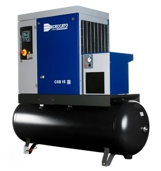 Винтовой компрессор CSB в исполнении на ресивере с осушителем. При необходимости получения воздуха с низкой точкой росы рекомендуется установка компрессора данной версии.