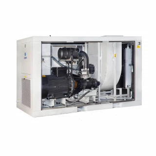 - Корпус оборудован шумоизоляцией и легко открываемыми люками для удобного доступа к компонентам системы. Компрессор обеспечивает низкий уровень шума во время работы и оснащен датчиками давления и температуры на выходе из винтового блока.