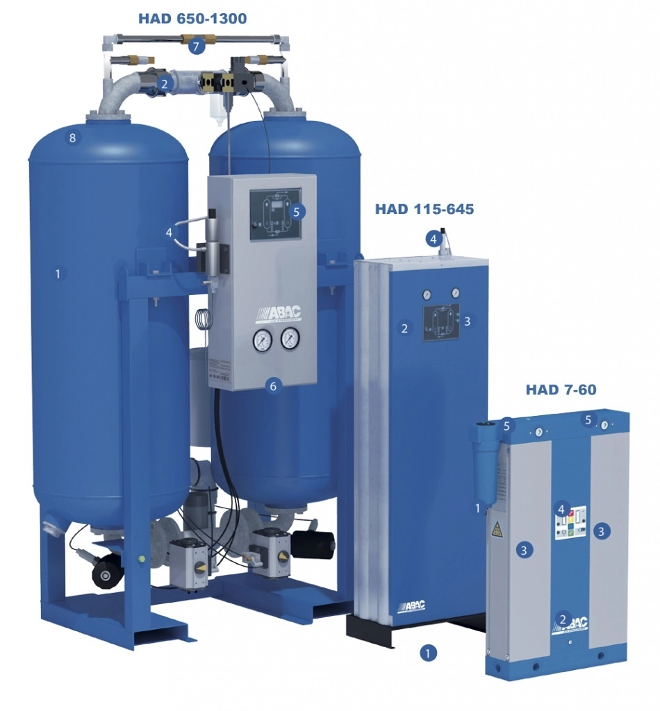 Адсорбционные осушители ABAC серии HAD применяется для осушения сжатого воздуха до точки росы -40°C.