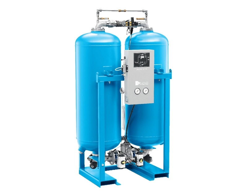 Адсорбционные осушители серии ADS состоят из двух сушильных башен, заполненных адсорбентом. Одна башня находится в режиме сушки, а другая в это время регенерируется за счет небольшого количества воздуха. Ассортимент осушителей охватывает температуры точки росы от -40°C до -70°C.