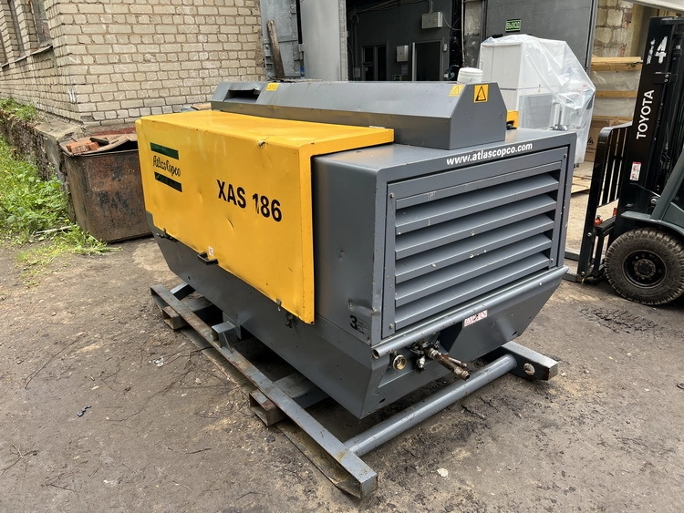 Компрессор XAS 186 имеет одноступенчатый винтовой маслонаполненный компрессорный элемент производства Atlas Copco Airtec приводимый в движение через гибкую резиновую неразъемную муфту от дизельного двигателя с турбонаддувом марки Deutz. Установка смонтирована на прочном основании и закрыта прочным погодозащитным и шумопоглощающим кожухом. Кожух имеет две широко открываемые крышки для доступа к обслуживаемым агрегатам и узлам установки. Кожух и основание оцинковано и окрашено порошковым способом с высушиванием при температуре +200°С. Сжатый воздух поступает к потребителю через один 1,5” и три 3/4” выходные патрубки. В стандартную комплектацию входит двойной ящик для инструмента. Установка оборудована топливным баком емкостью 175 литров.