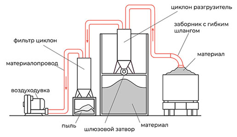 Роль играют циклоны, отделяющие продукт от воздуха. Пневматический транспорт обеспечивает сохранение качества продукта при транспортировке.