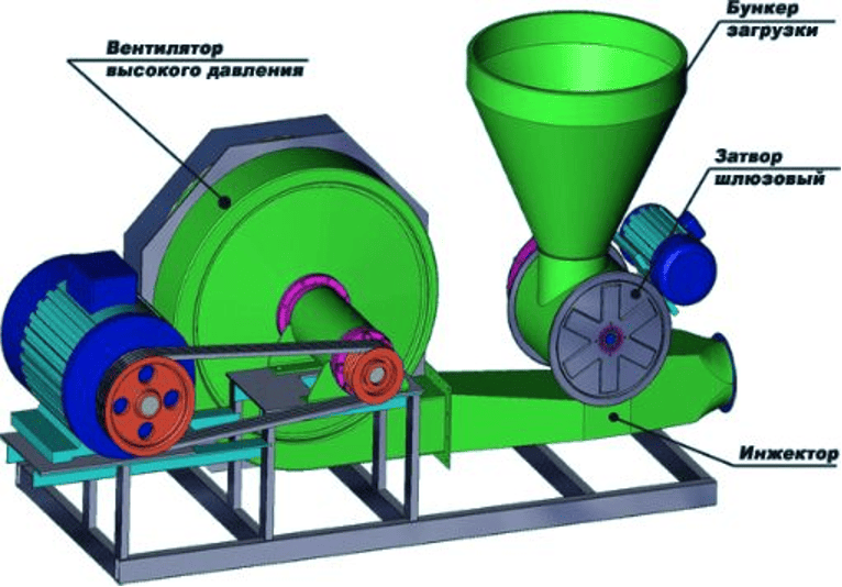 Производительность воздуходувки должна соответствовать требуемому объему транспортируемого материала в единицу времени. А давление, создаваемое вентилятором для пневмотранспорта, должно быть достаточным для преодоления сопротивления трубопровода и обеспечения необходимой скорости потока воздуха.